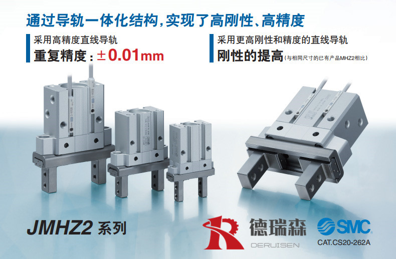 smc中国一级代理商东莞德瑞森机电设备有限公司代理商产品:SMC标准型气缸、SMC紧凑型气缸、SMC耐水性提高气缸、SMC浮动接头、SMC气液单元、SMC无杆气缸、SMC气动滑台、SMC带导杆气缸、SMC锁紧气缸、SMC特殊气缸、SMC夹紧气缸、SMC止动气缸、SMC测程缸、SMC带阀气缸、SMC其他气缸、SMC液压缓冲器、SMC磁性开关、SMC4、5通先导式电磁阀、SMC3通先导式电磁阀、SMC3、4、5通直动式电磁阀、SMC串行传送系统、SMC气控阀、SMC机控阀/SMC手动阀、SMC大功率阀、SMC摆动气缸、SMC气爪、SMC真空发生器、SMC真空过滤器、SMC真空吸盘、SMC真空系统关联元件、SMC压缩空气清净化元件、SMC压缩空气清净化过滤器系列、模块式F.R.L.、减压阀、SMC电-气比例阀/SMC比例阀/SMC增压阀、SMC润滑元件等SMC气动元件全系列产品。